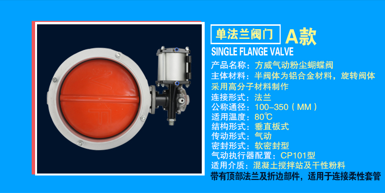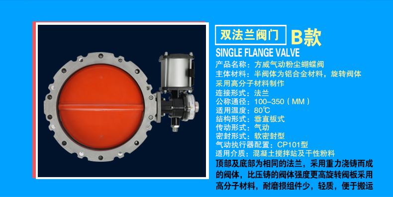 Aluminum alloy powder butterfly valve flange pneumatic dust butterfly valve DN200 250 300 for cement mixing station
