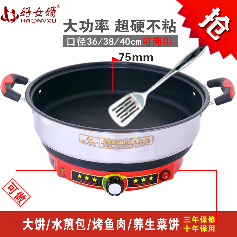 Electric baking pan Household deepened plus size 40cm pancake pancake artifact plug-in commercial single-sided multi-function electric frying pan