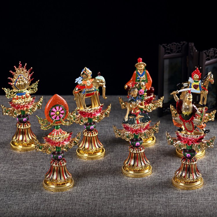 Buddhist Supplies Mikey for Pink Painted Seven Zheng Bao Bronze Wheel King Seven Treasures of Seven Treasure
