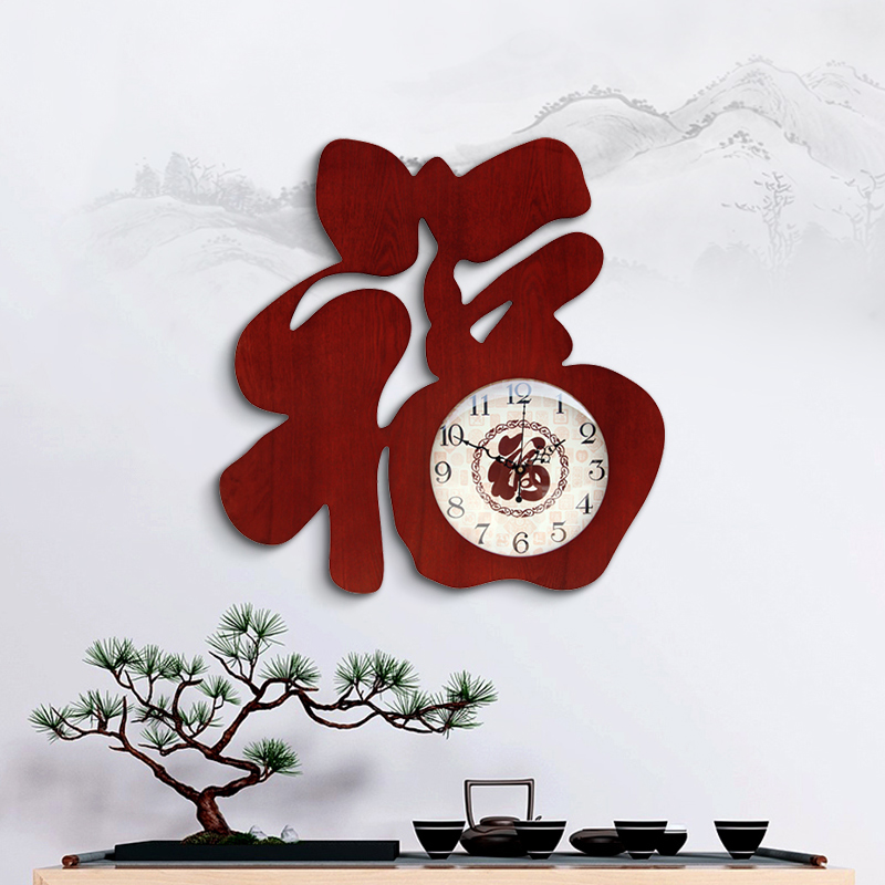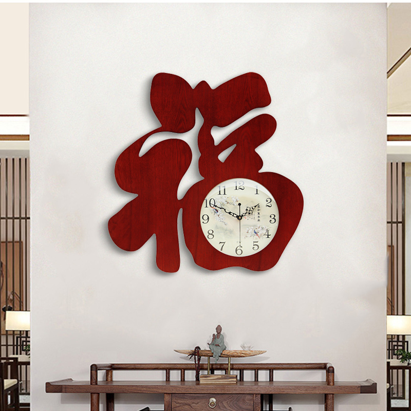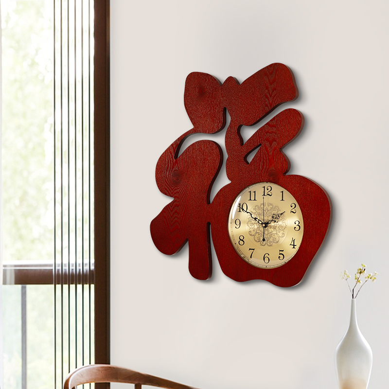 Clock style wall clock mute living room personality creative vintage Chinoiserie wooden clock decoration home large hanging watch