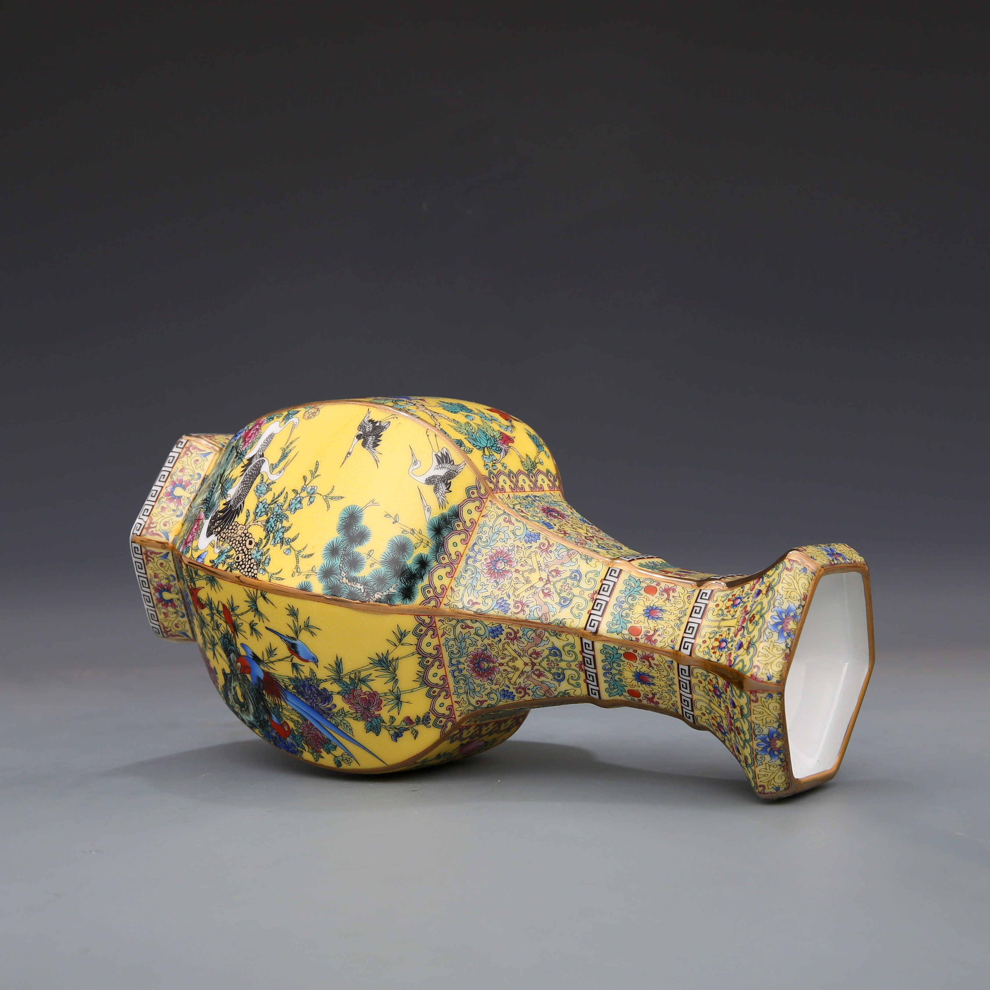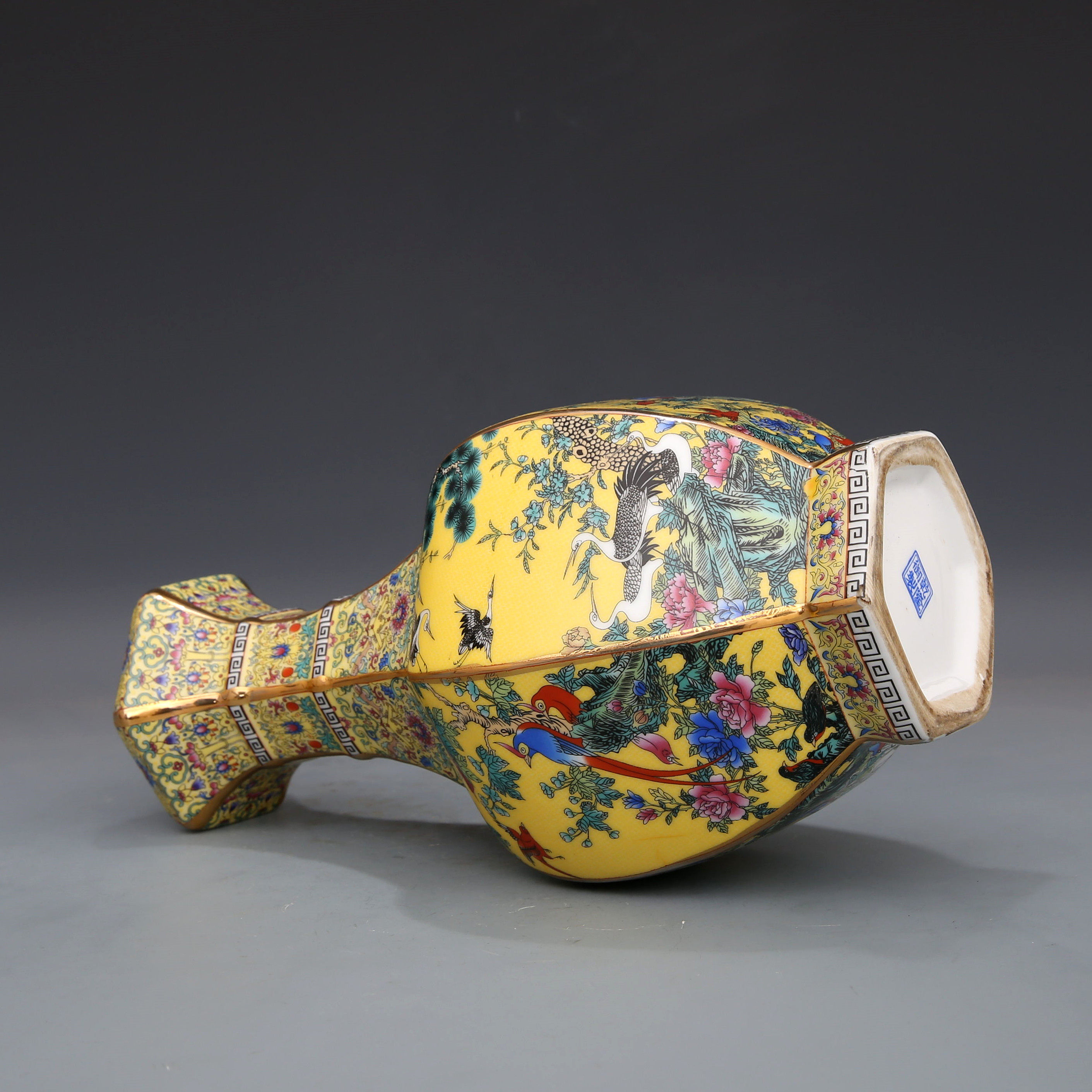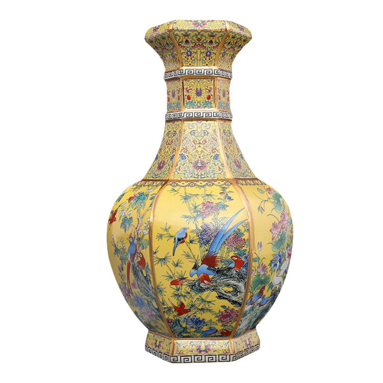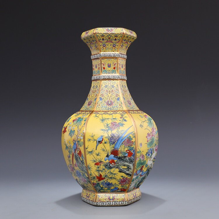 Dry London Year Enamel Color Sketching Gold Hexagonal Flower Bird Bottle Antique Porcelain Ancient Play Ancient Porcelain Ware Old Objects Collection