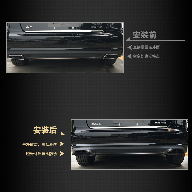 Suitable for Audi a6l exhaust pipe tail throat four-out decorative frame Q7 car modified new A4L titanium black warrior A7
