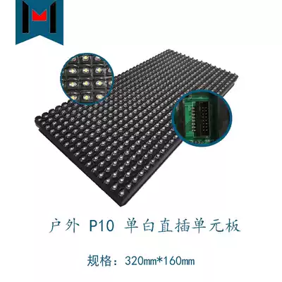LED monochrome full waterproof outdoor P10 single white straight plug unit Board LED display module door head rolling