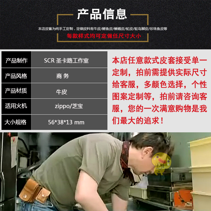 Handmade genuine leather lighter leather jacket Applicable zippo Zhi Bao Hung Waist Lighter set Sub original Custom Size