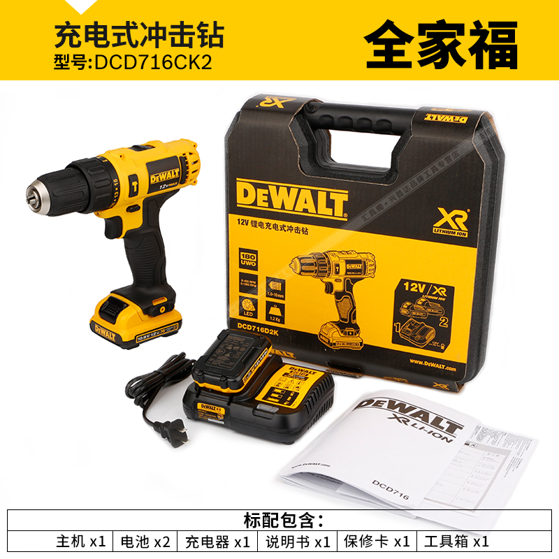 Weiwei 12V rechargeable impact drill DCD716 lithium battery multifunctional electric drill screwdriver screwdriver double purpose