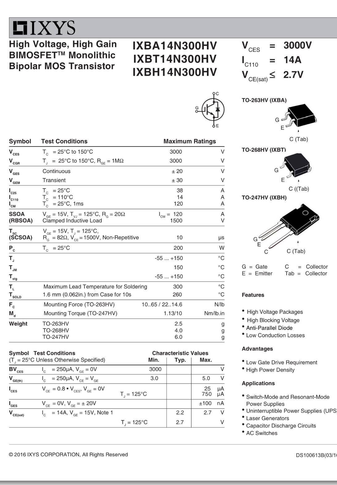 IXBA14N300HV IGBT high pressure 3000 volt 14A original fit 263 package in kind shooting