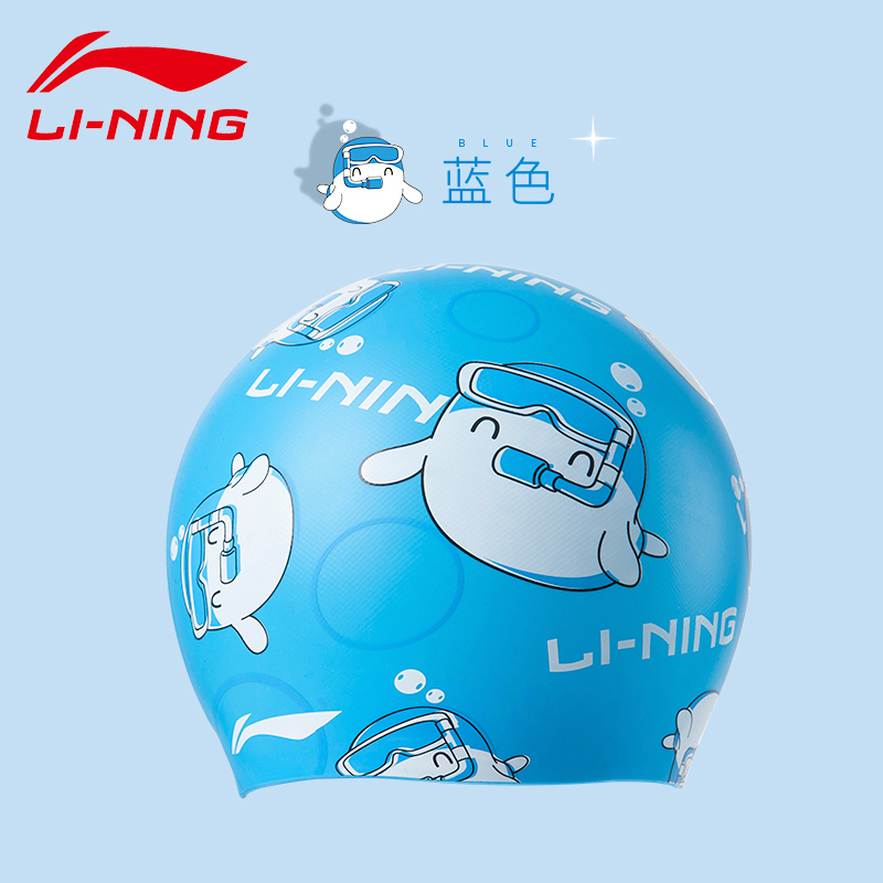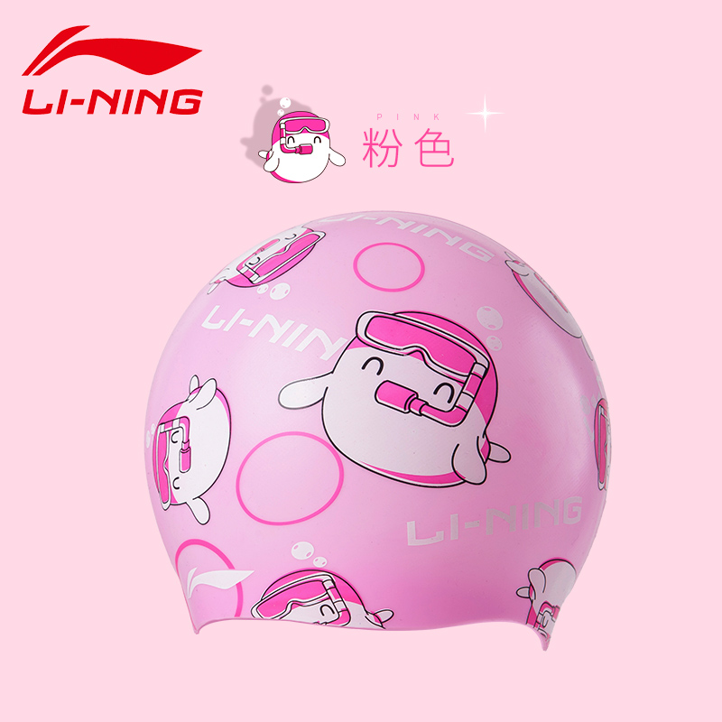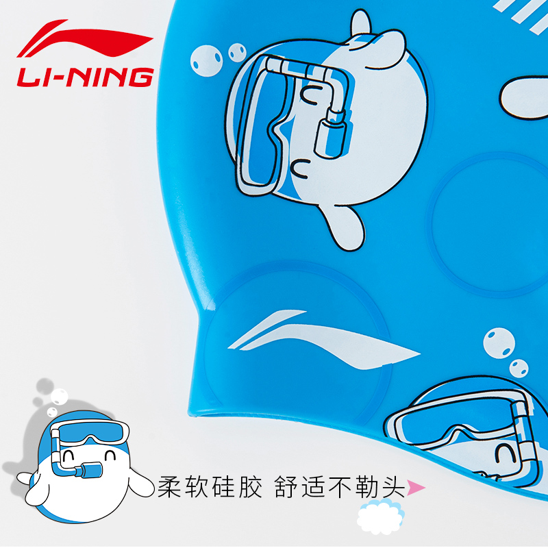 Li Ning Children's swimming cap Women's silicone swimming cap Long hair Men and women Waterproof Cute Stylish not Le Haircut Swimming Cap