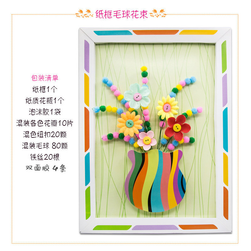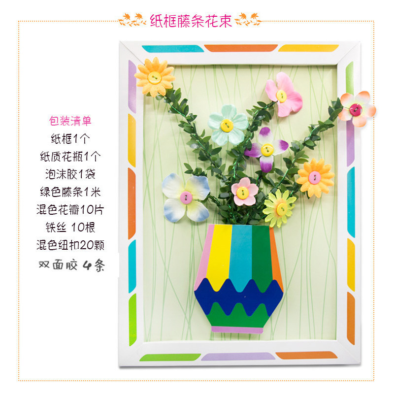 Children's handmade button illustration bouquet educational toy making button painting kindergarten diy material package photo frame painting