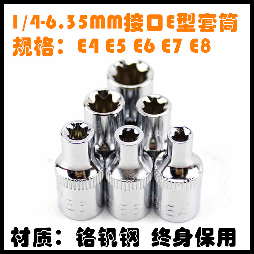 6.3mm1 4 Pattern E Type Sleeve E4-E11 Sleeve 1 Small Fly Flower Type Sleeve Head Auto Repair Auto Maintenance Hardware Tool