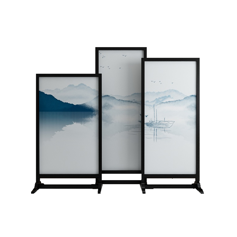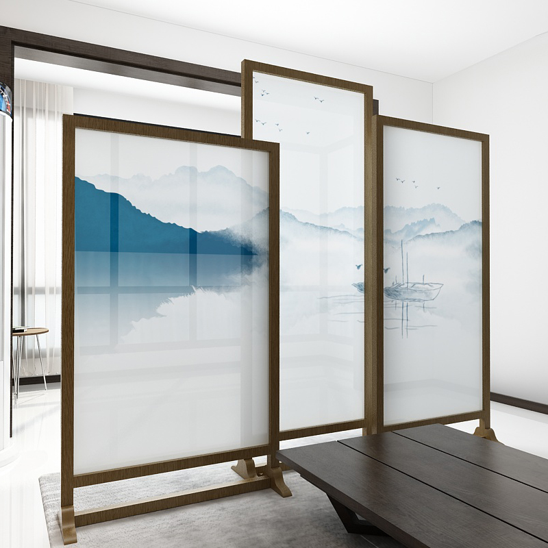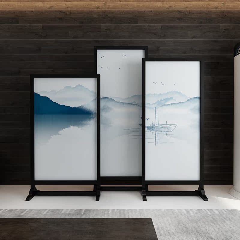 New Chinese modern seat screen solid wood living room compartment screen Office study decoration mobile double-sided fabric screen