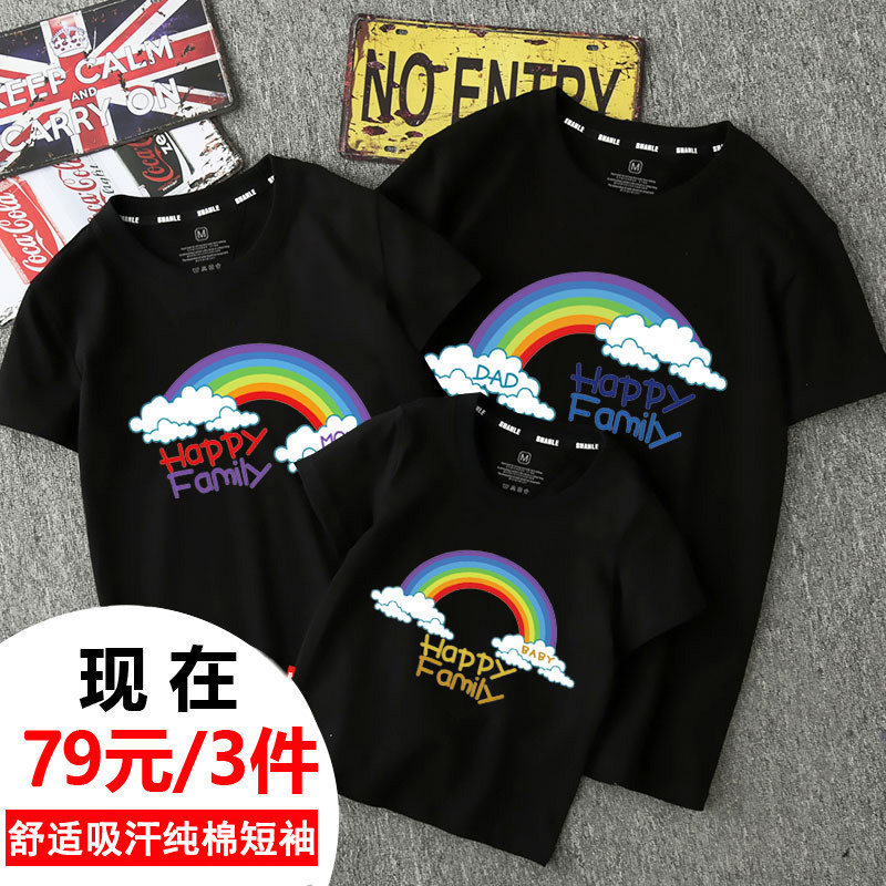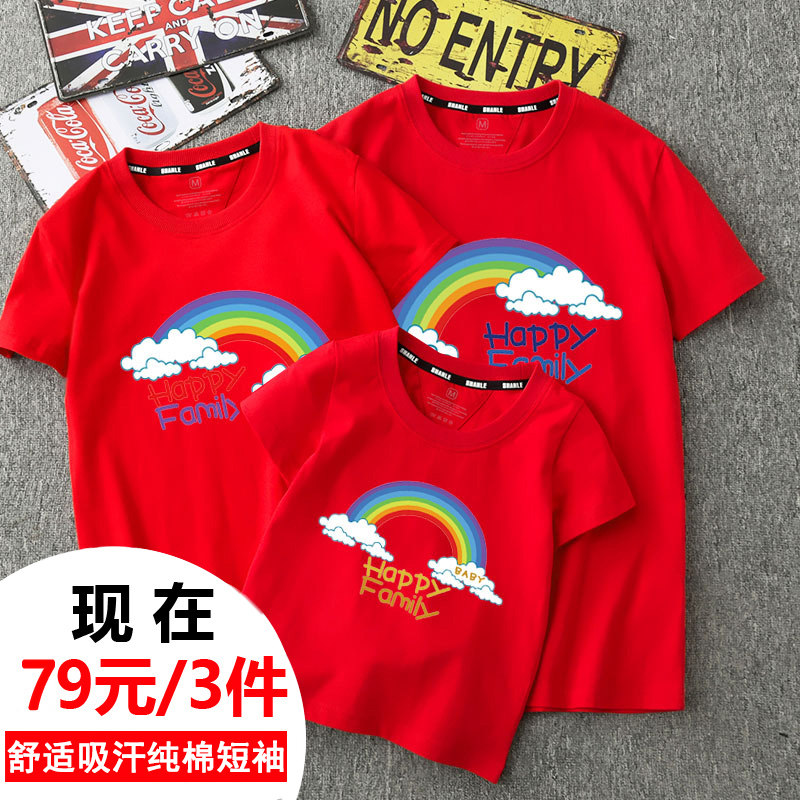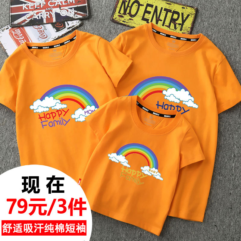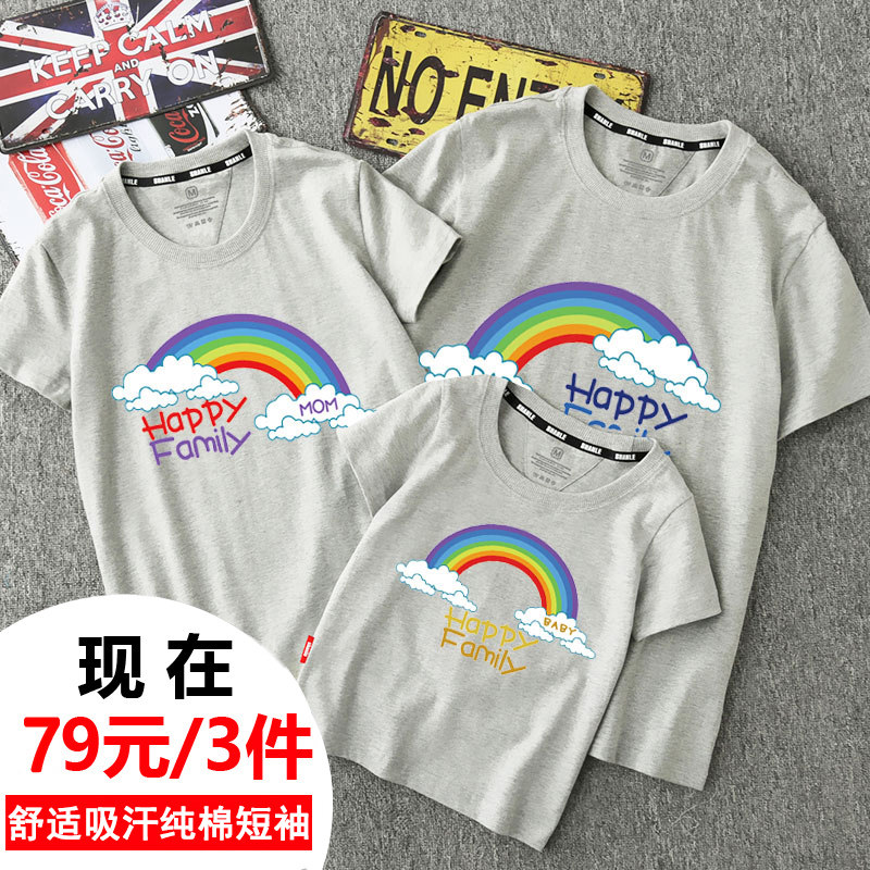 Parent-child summer jacket Pure cotton short-sleeved t-shirt A family of three or four kindergarten mother-daughter mother-child outfit family fashion trend