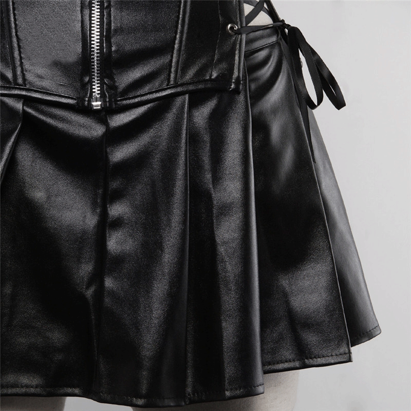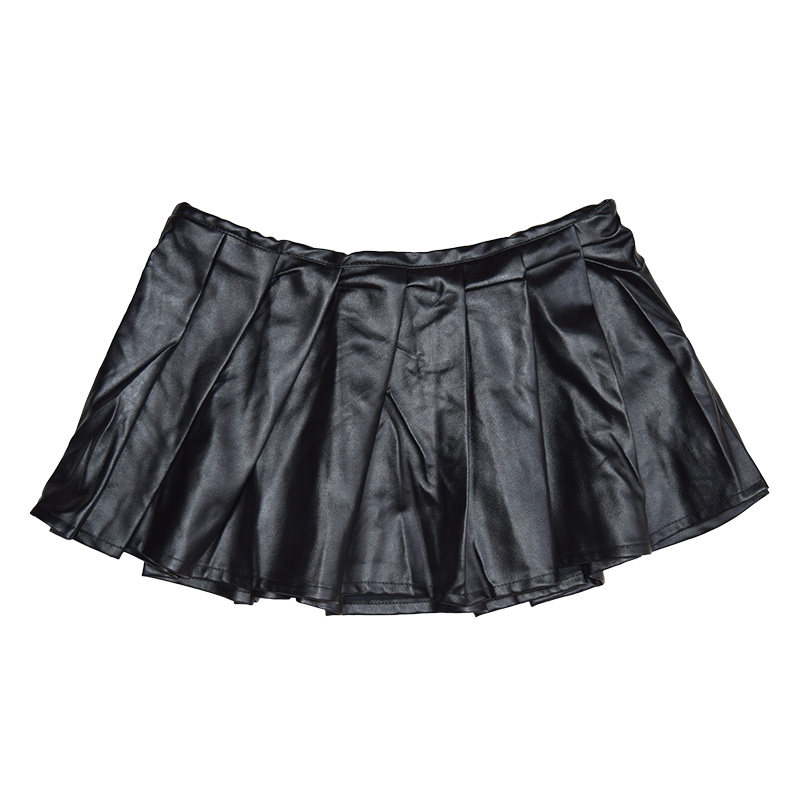 Leather skirt ladies pu black ruffles spring sexy all-match skirt pleated skirt leather miniskirt skirt 8529