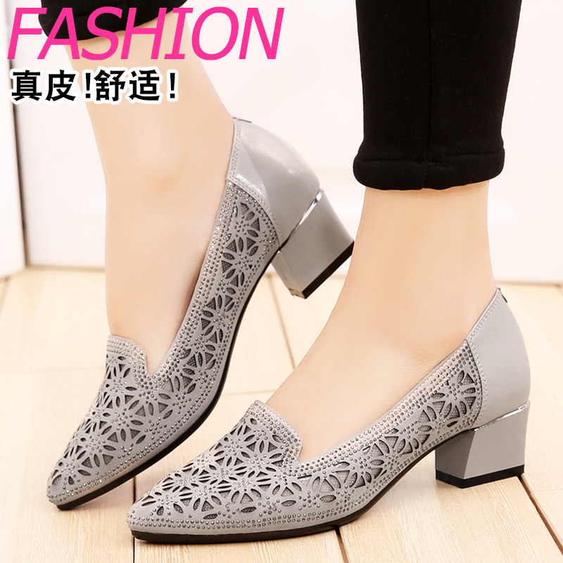 Shoes children 2022 new spring summer sandals coarse heel leather mesh shoes with covered shoes 100 hitch hollow leather shoes women's shoes