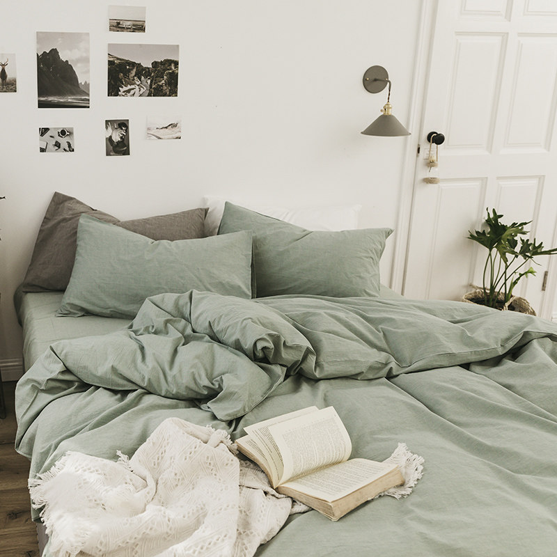 Extremely simple wind washed cotton four pieces of covered pure cotton quilt cover bed linen spring summer style double 1 8 m pure color All cotton Nordic 2 m