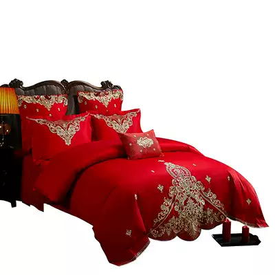 Wedding four-piece set European big red embroidery wedding happy bed bed sheets quilt cover wedding wedding room wedding bed six sets