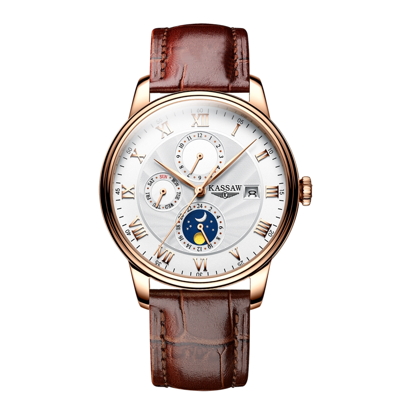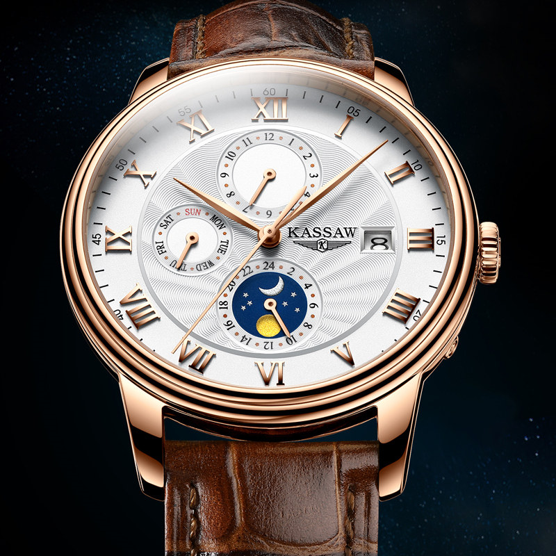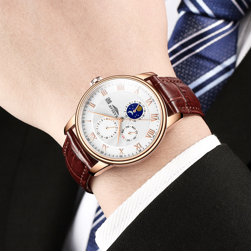 Stage brand watch men's mechanical watch ultra-thin leather belt three-eye men's watch multi-functional fashion trendy men's watch