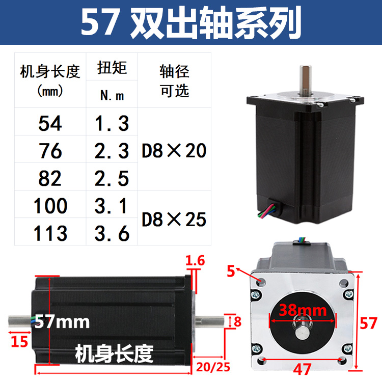 Manufacturer Direct sales Two-phase 4 lines 1 8 degrees 57 Double out shaft stepper motors Large torque Multiple Torque Hostages 1 year