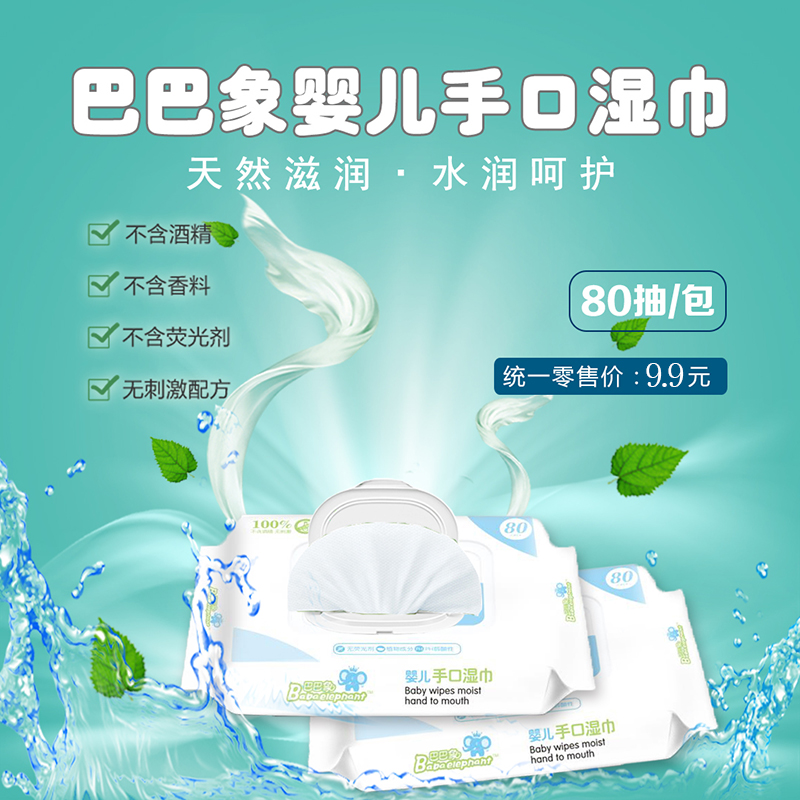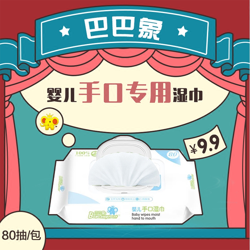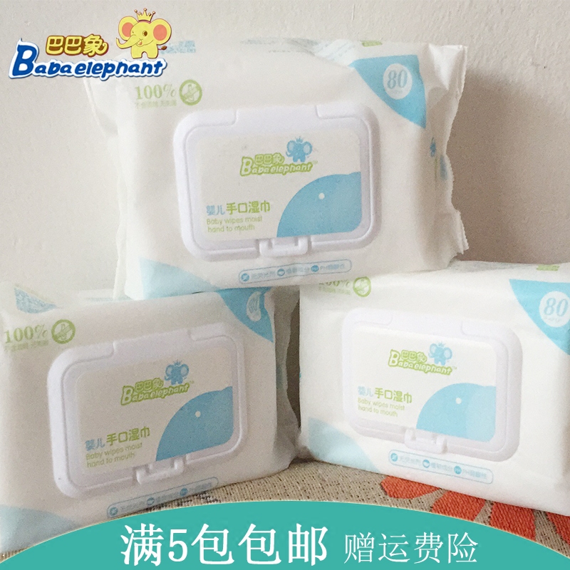 Baba Elephant Wet Tissue Baby Baby Wet Towel Newborn Child Hand Mouth Wet Wipes 80 Pumping 5 Packs