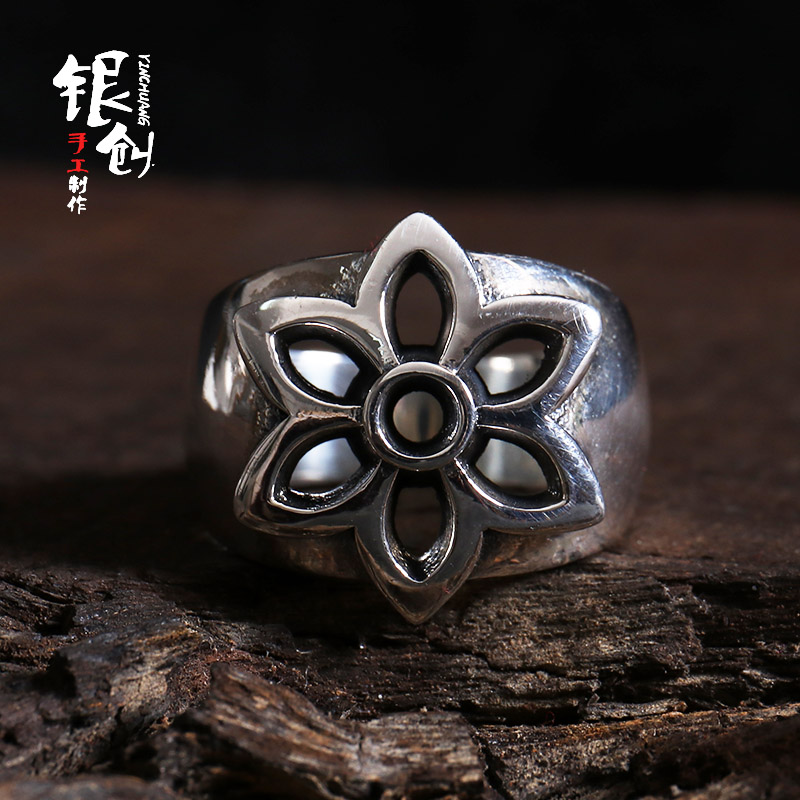 good art cherry ring 925 pure silver retro locomotive personality men and women hand hollow in