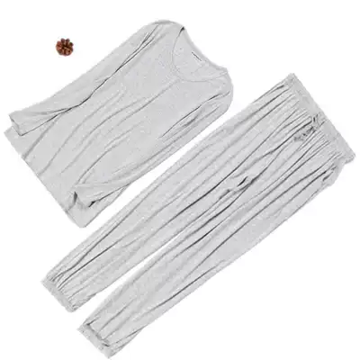 Ice silk pajamas men's long-sleeved trousers two-piece summer thin air-conditioning clothing large size loose home clothing pipe pants