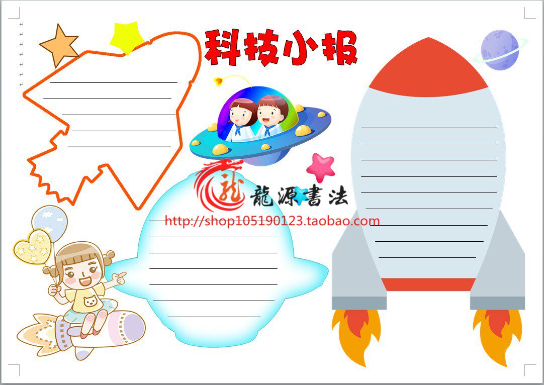 A3A4 science and technology handwritten newspaper line drawing coloring blank template scientific tabloid stroke coloring briefing template report
