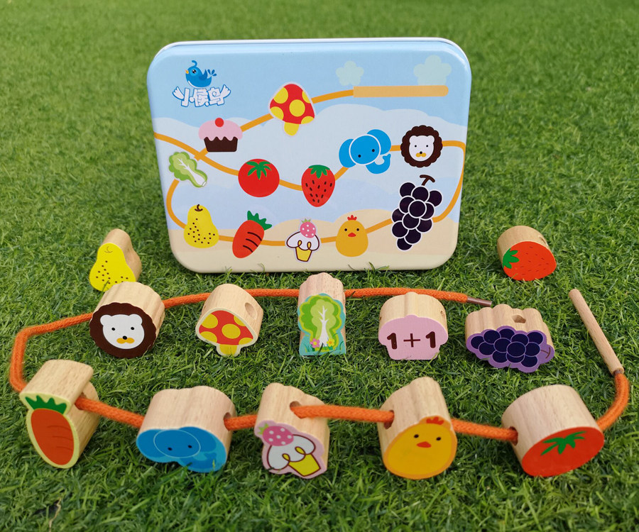 Beech string of beads toy with a toy