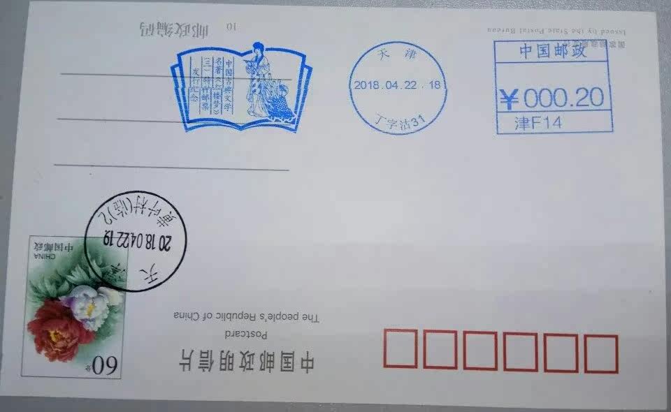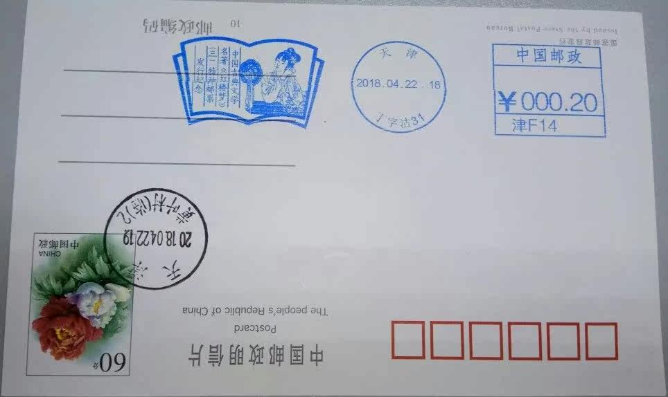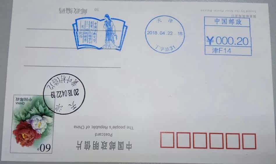 Tianjin Red Mansions postage machine stamp stamp seal seal 60 points postage film stamped Huangye Village temporary post office temporary post stamp
