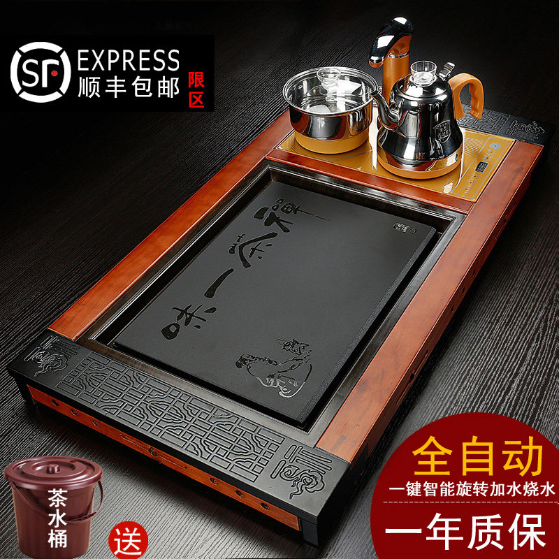 Fully automatic household ceramic Ugin stone tea tray solid wood tea sea tea table kung fu tea set four-in-one induction cooker
