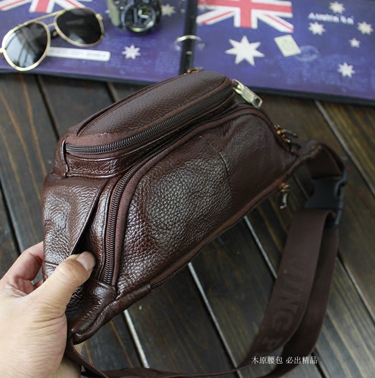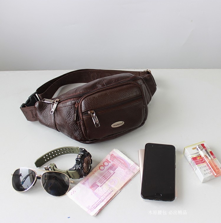 Top Layer Cowhide Waterproof Sports Waist Bag Multi-Pocket Function Street Fashion Girl Business Change Sunglasses Storage Bag - Taobao