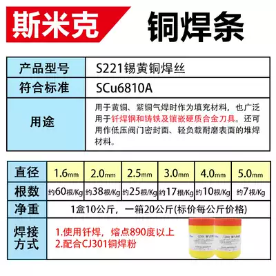 Shanghai Smick aircraft brand S221 tin brass welding wire HS221 tin brass welding wire copper electrode 2 5 3 0 4