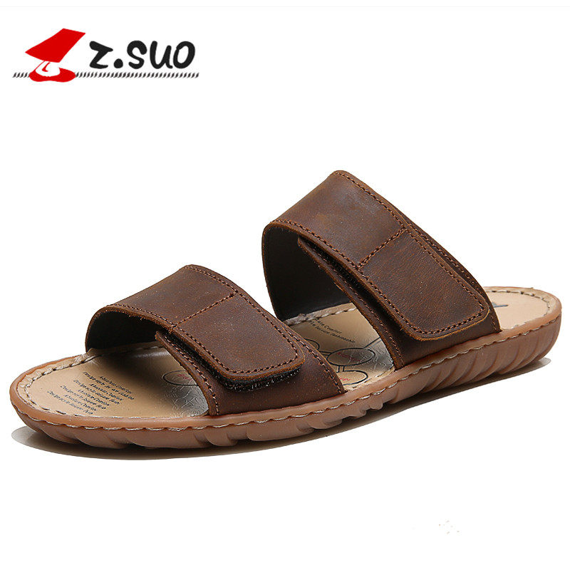Walking Soo men's slippers Summer outwear genuine leather I drag Korean version trendy beach shoe outdoor large size cow leather sandal slippers male