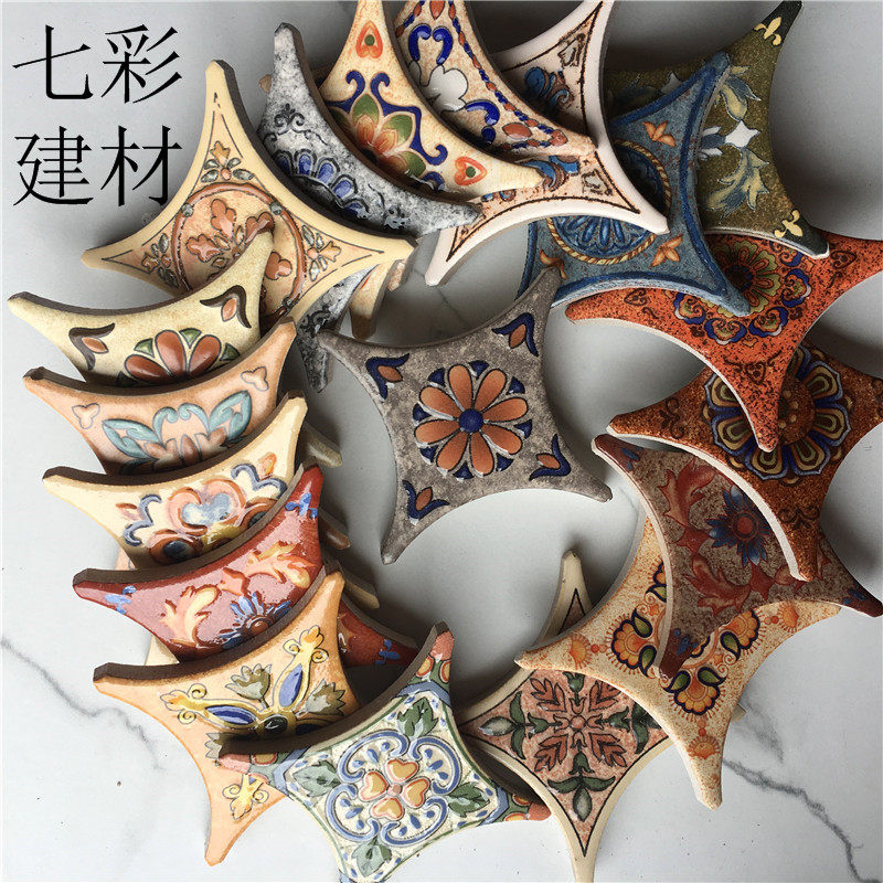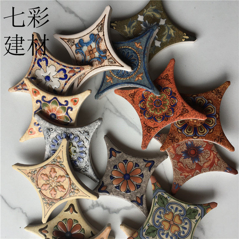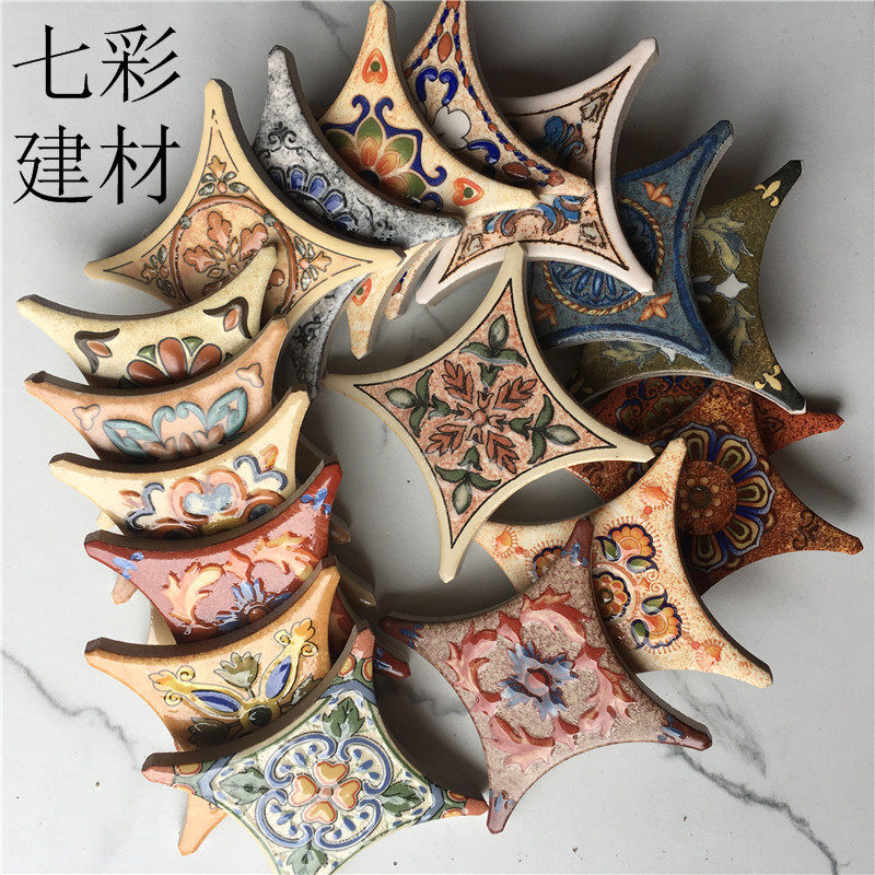 78mm Rounded Corners Imitation Ancient Brick Corner Flowers 500 Wall Brick Parquet Tiles Parquet American Retro Floral Brick 600 Stars