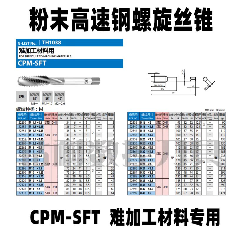 OSG powder high speed steel spiral wire taps Japan imported CPM - SFT difficult processing material for machine cone thread