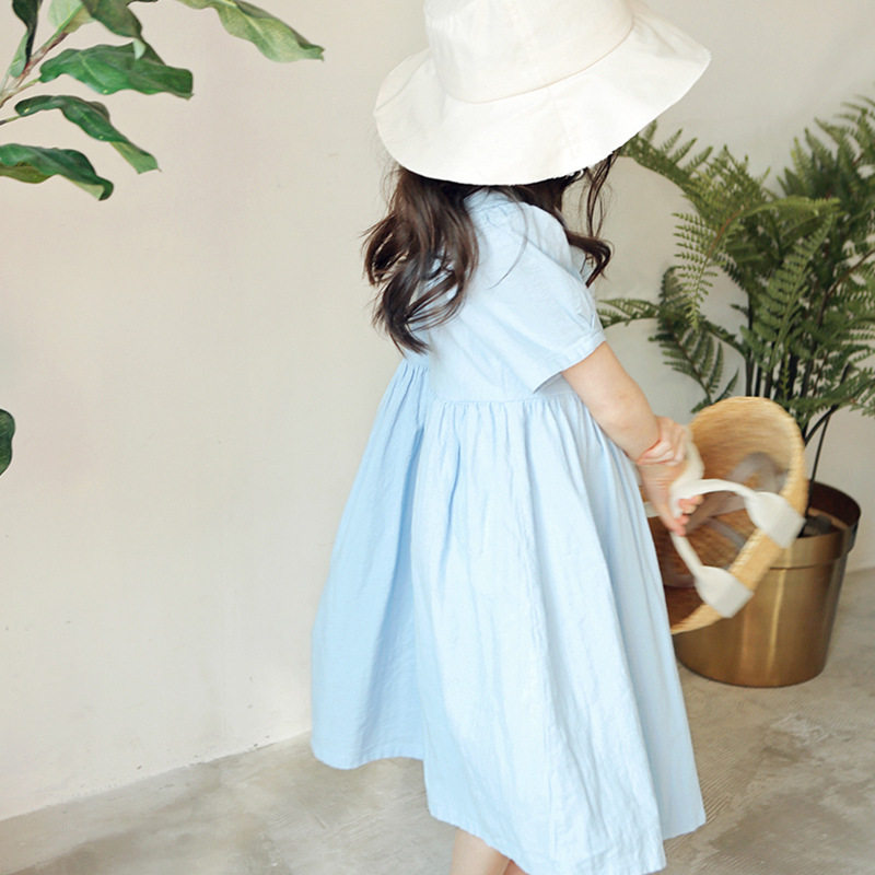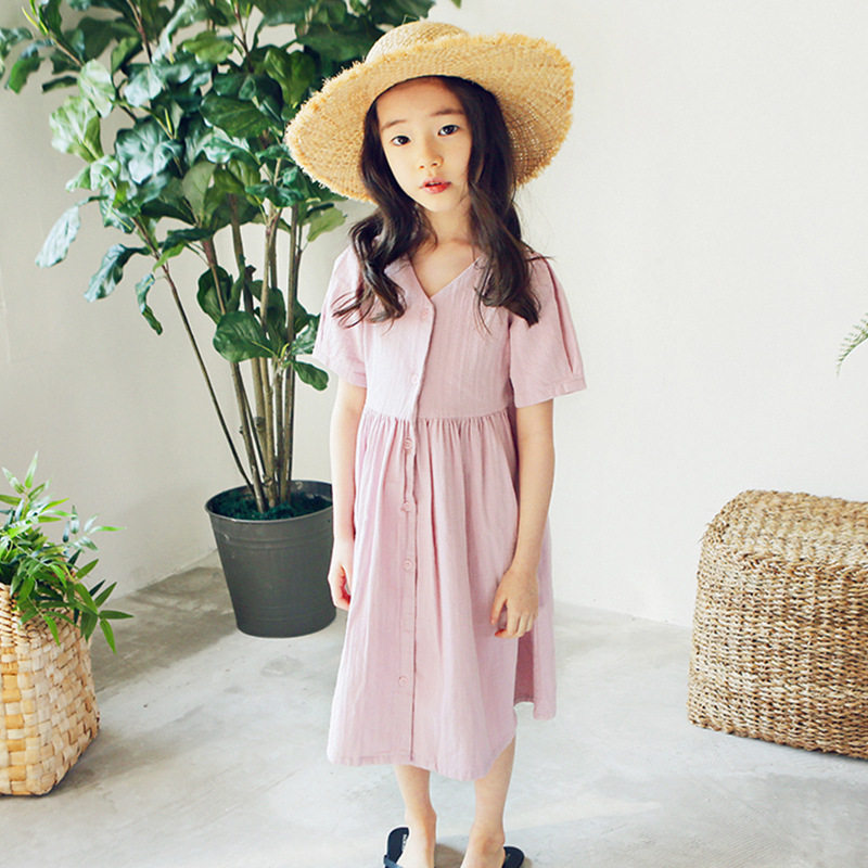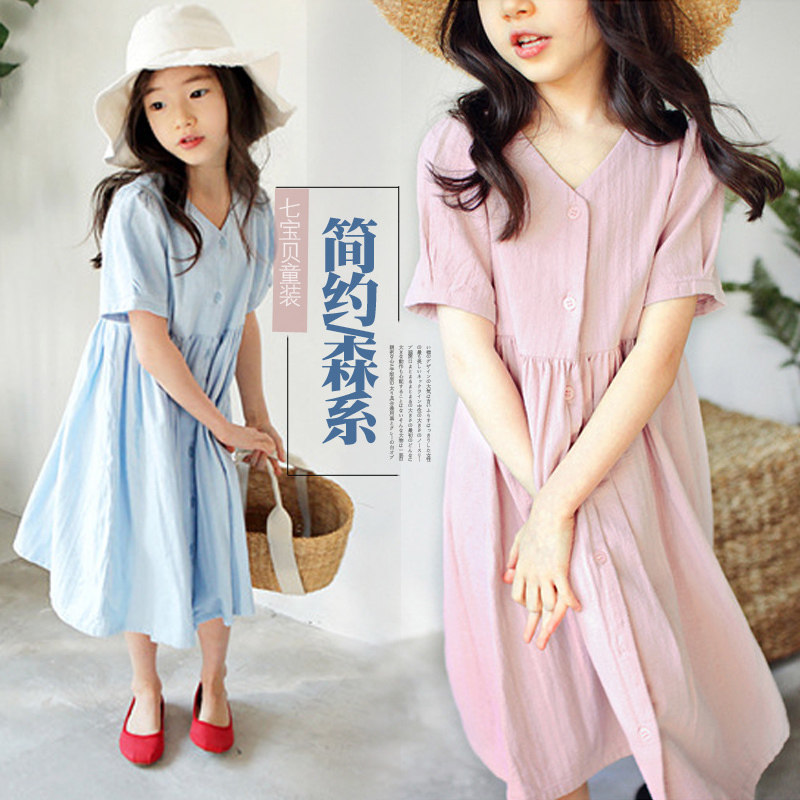 Children's Han version Summer style Short sleeves V collar Single dress Girl Foreign Dress Son Ensemble Literature Long Dress Inins pro