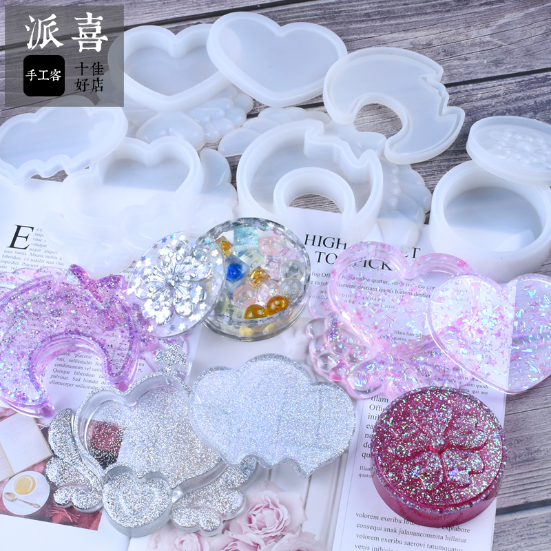 Pai Xi crystal glue diy handmade jewelry Crown cherry blossom love silicone box mold jewelry collection box