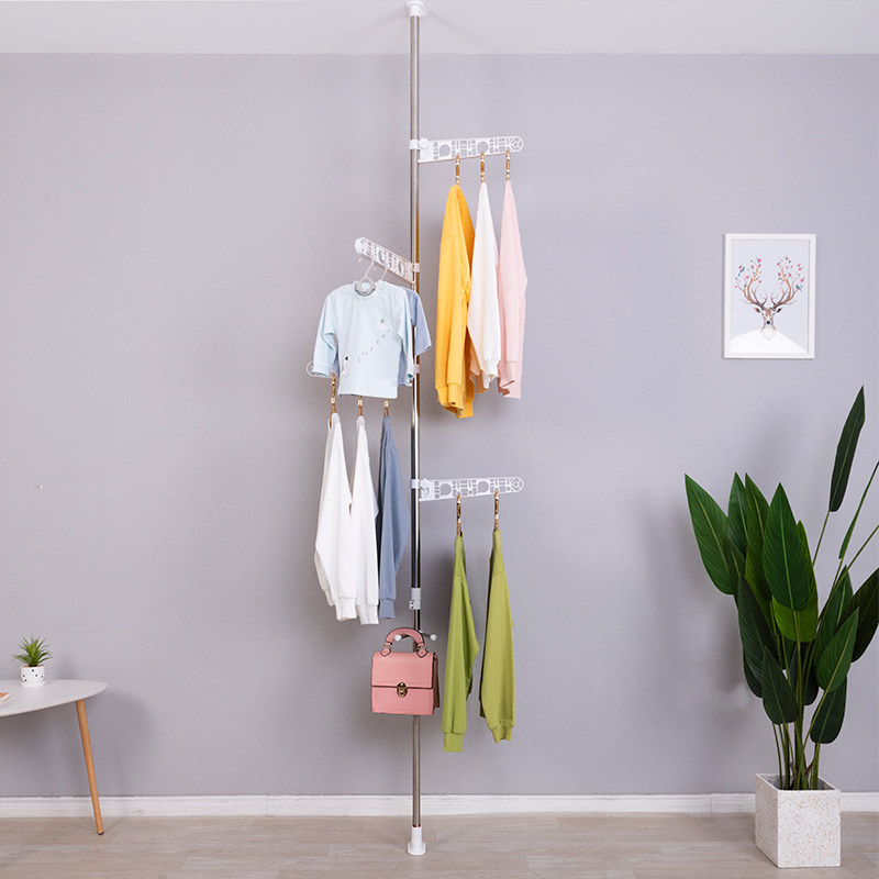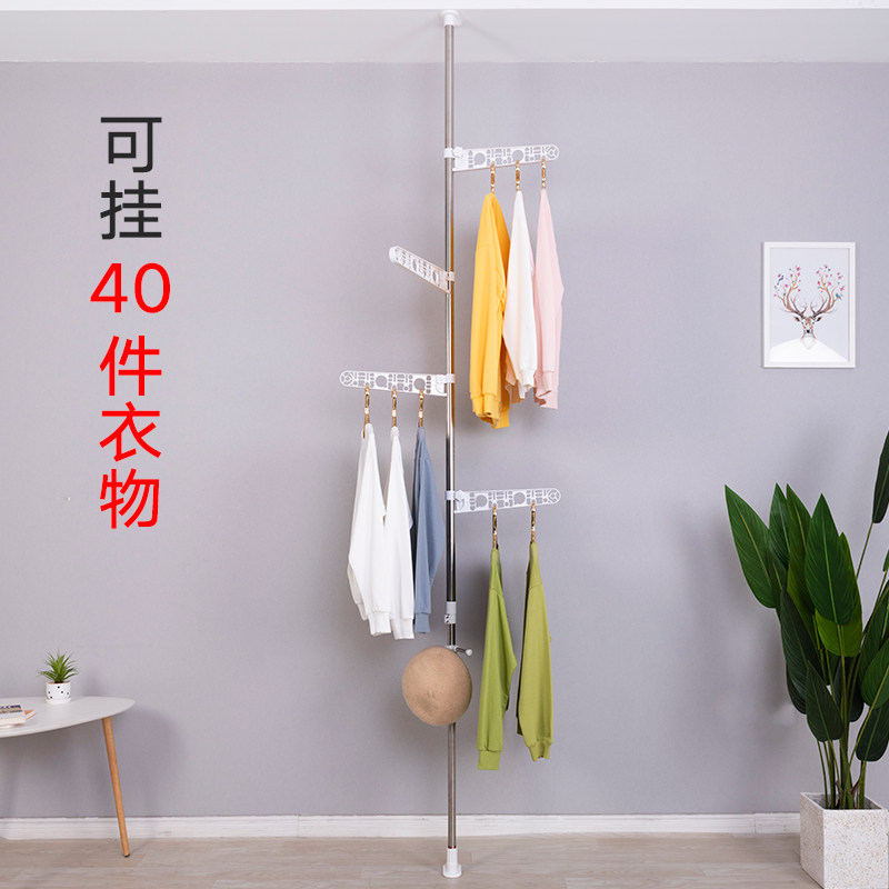 Punch-free top sky standing lichen hat rack floor lift single pole hanging hanger indoor balcony hanger bedroom foyer rack