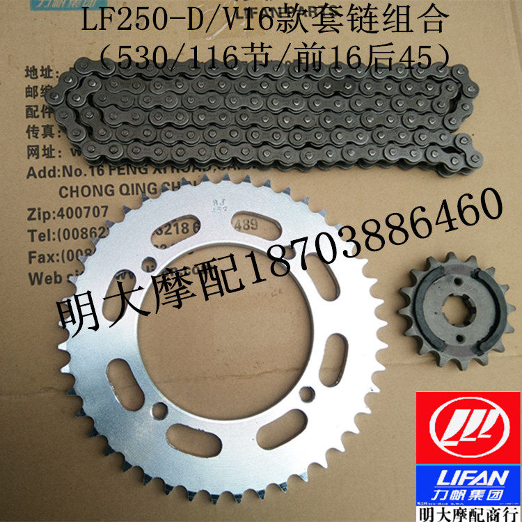 Original chain combination front and rear sprockets Large chain Front and small flywheel 16 teeth Rear chain 46 teeth Original large chain 530 116 sections Oil envelope chain One set of front and rear sprockets Oil