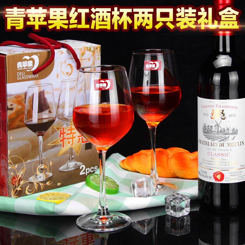 Green Apple Red Wine Glass Gift Box Set Home Wine Mug Hotel High Foot Cup Glass Juice Cup Color Box Dress