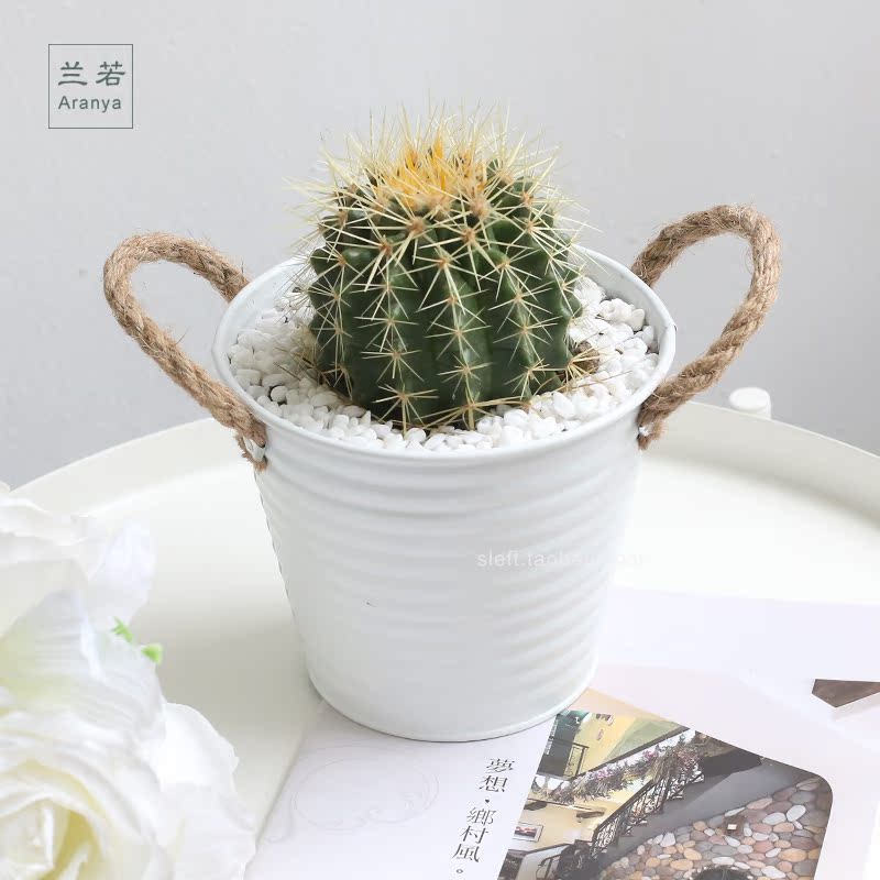 Minima hemp rope double ear Tin multi-meat flower pot Tin Barrel Floral creative pendulum Iron Art Flower Pot Dried Flower flowers Bucket