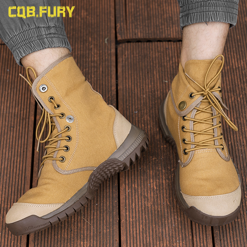 Summer high tube breathable outdoor hiking hiking boots Combat boots Army boots Tooling Martin Rhubarb canvas desert shoes