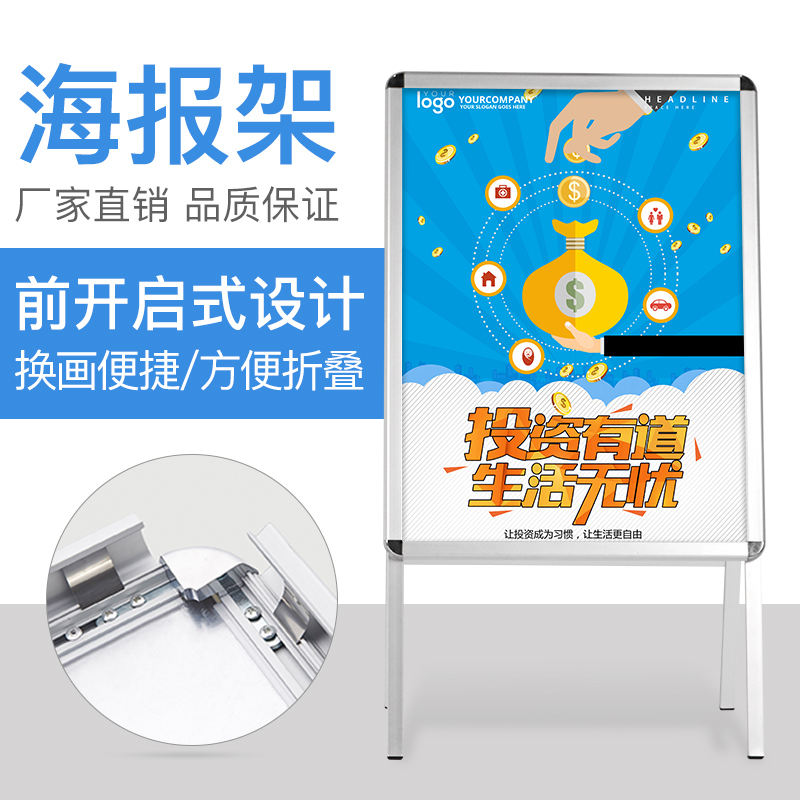 Aluminum alloy poster rack display rack folding advertising rack vertical stand-up publicity display rack floor roll-up KT board