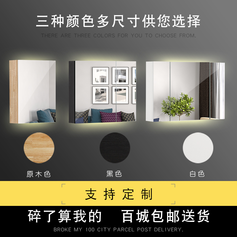 Hengcheng solid wood paint-free mirror cabinet Wall-mounted bathroom powder room mirror box Waterproof storage objective lens cabinet with lamp customization