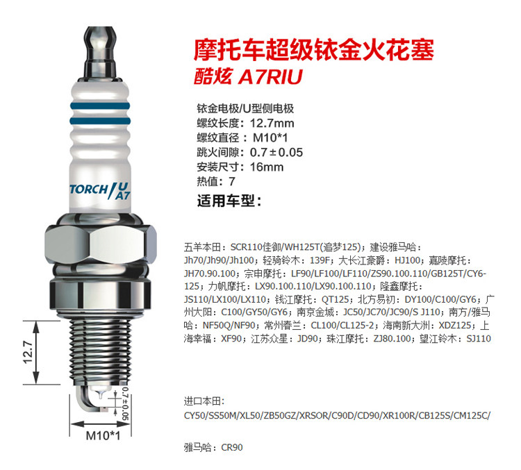 Torch motorcycle iridium spark plug 110 125 150 B7 A7TC D8TC curved beam scooter tricycle
