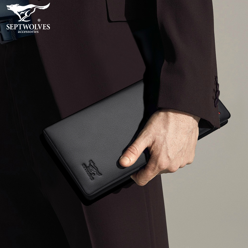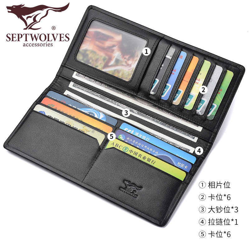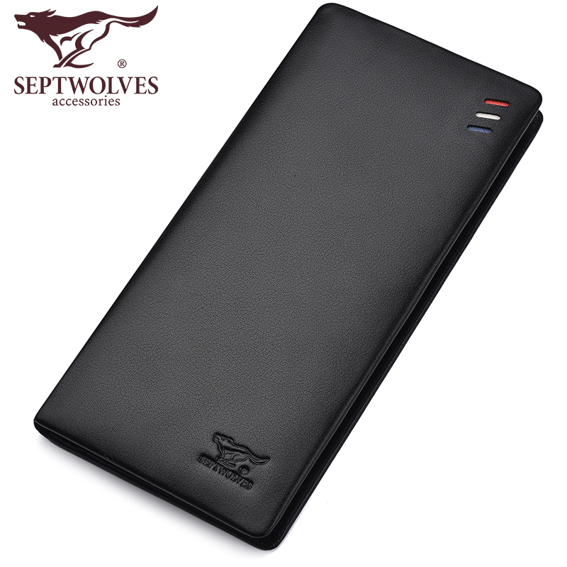Seven wolves men's wallet long leather 2021 new tide brand fashion ultra-thin lettering custom wallet men