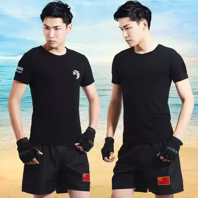 T-shirt men short sleeve summer cotton embroidered half sleeve shorts China short sleeve set
