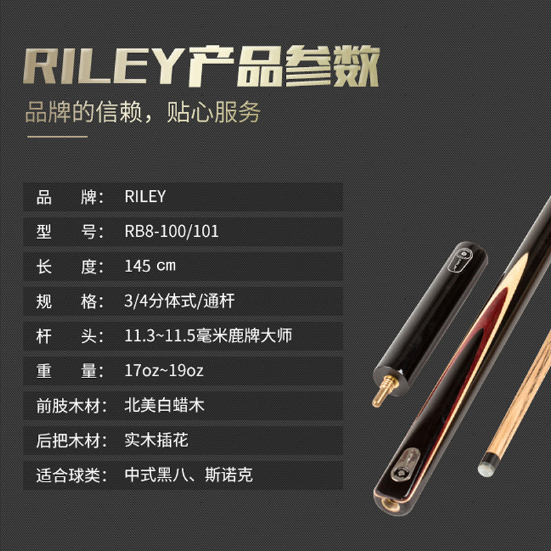 British Riley Riley Chinese black eight billiard rod RB8-100 101 snooker big head handmade two-piece through rod 11