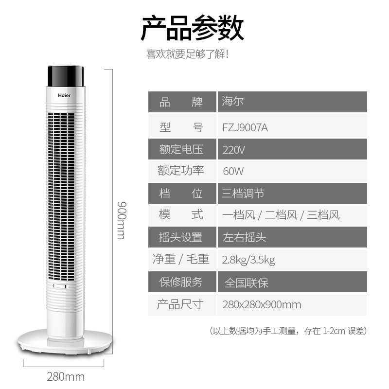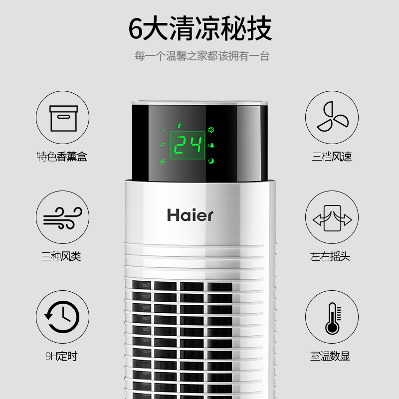 Haier electric fan tower fan home tower-floor fan remote control timed non-leaf vertical electric fan desktop dormitory fan