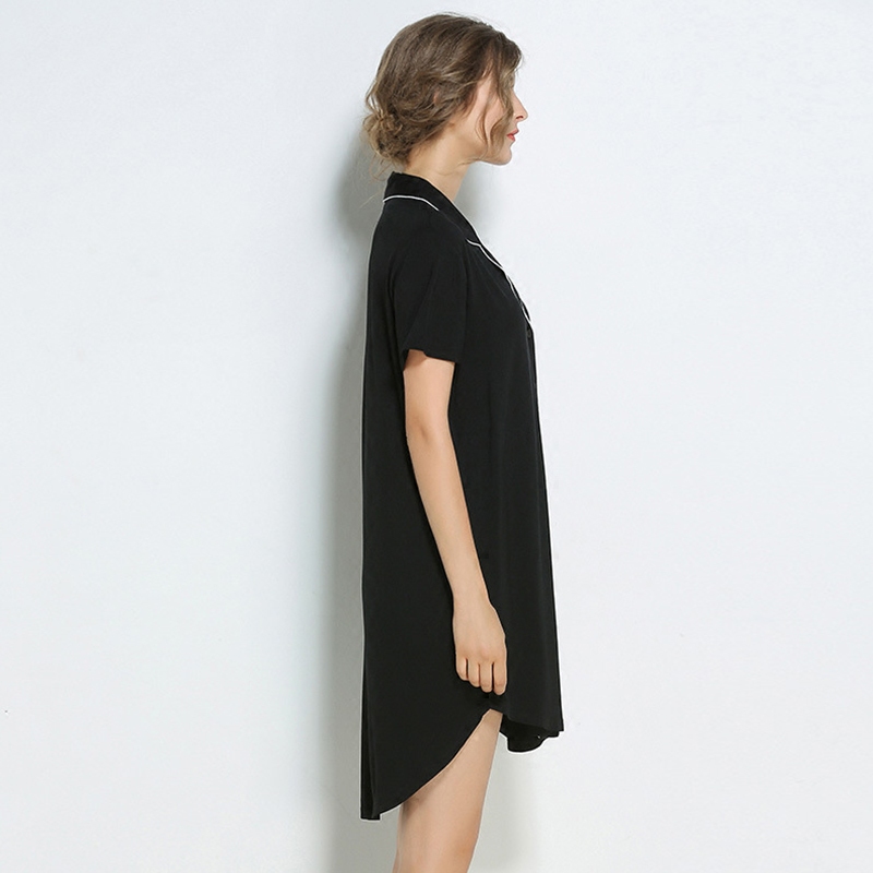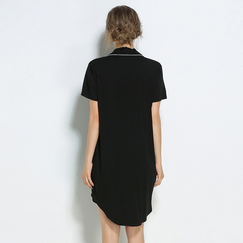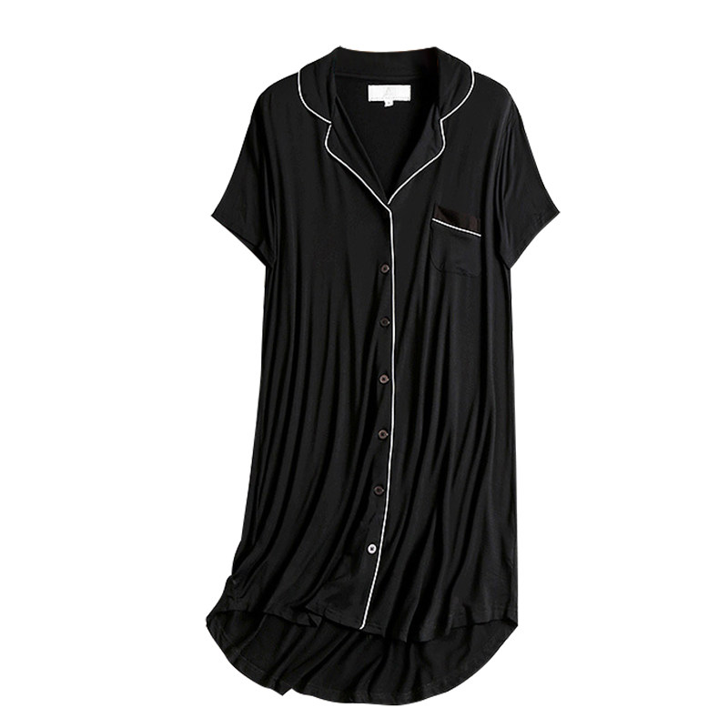 Modal sexy black short nightdress cardigan shirt-style cotton pajamas summer women's home clothes large size can be worn outside