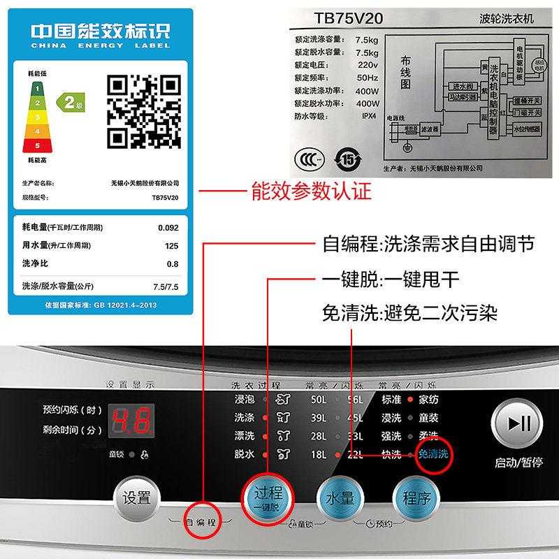 Small swan washing machine fully automatic home 7 5 kg wave wheel small mini dehydrated and dry dorm room TB75V20