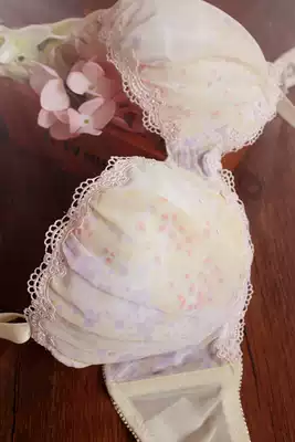 Japanese disc chest bra Small floral bra small circumference large cup girl bra Chiffon cute large size underwear